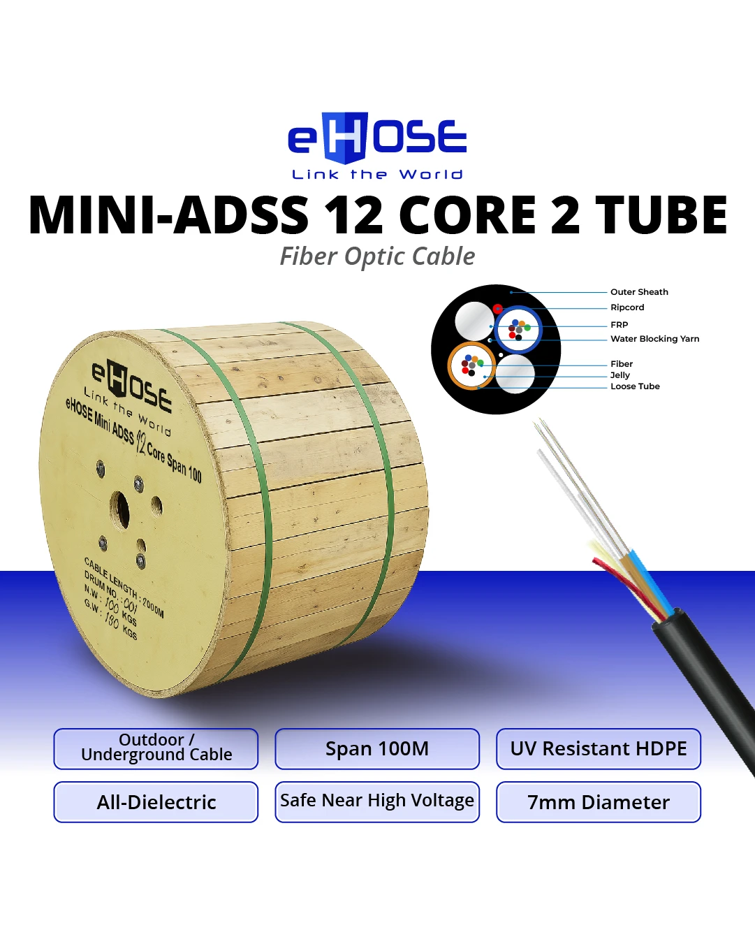 EHOSE MINI ADSS 12 CORE 2 TUBE 2KM