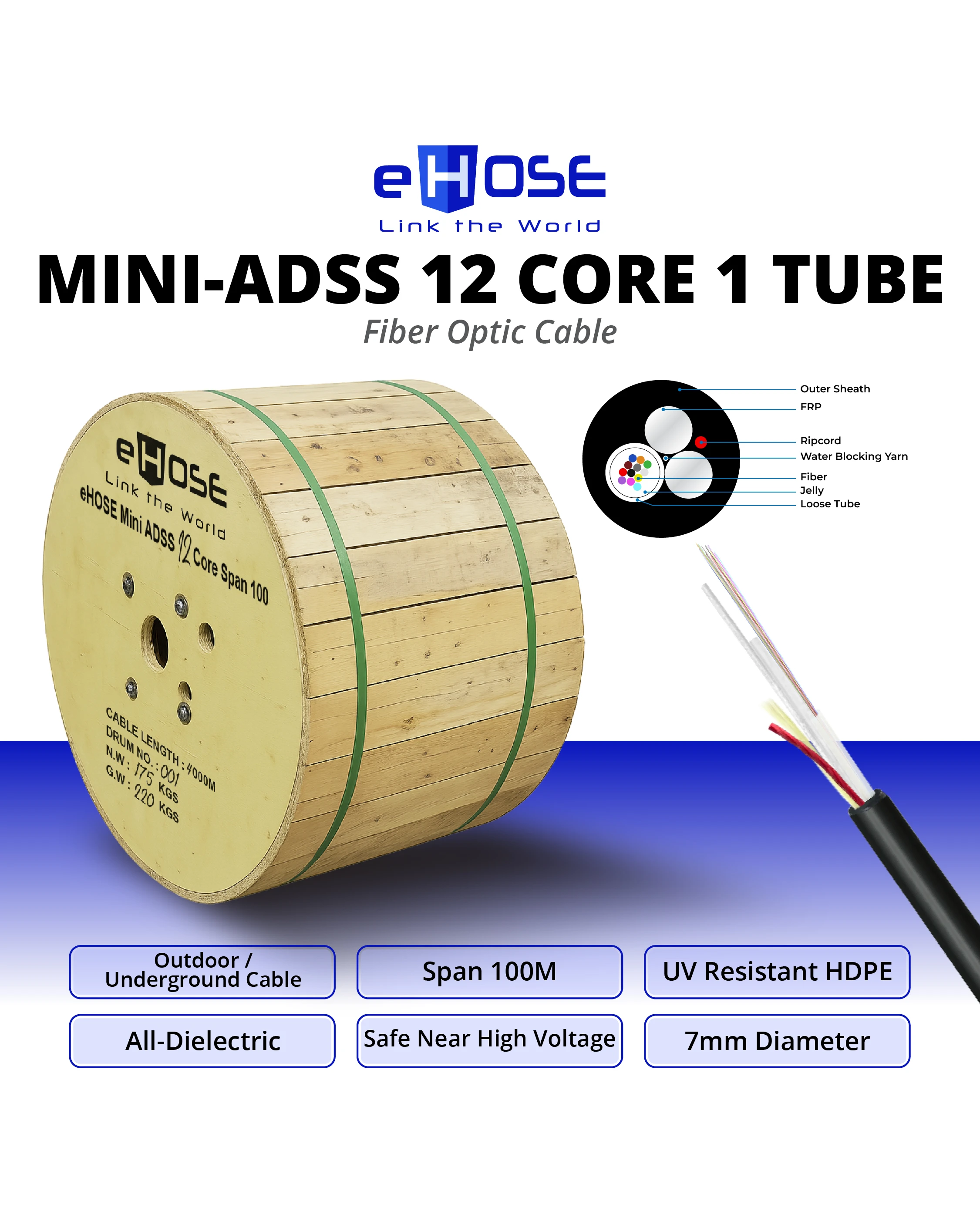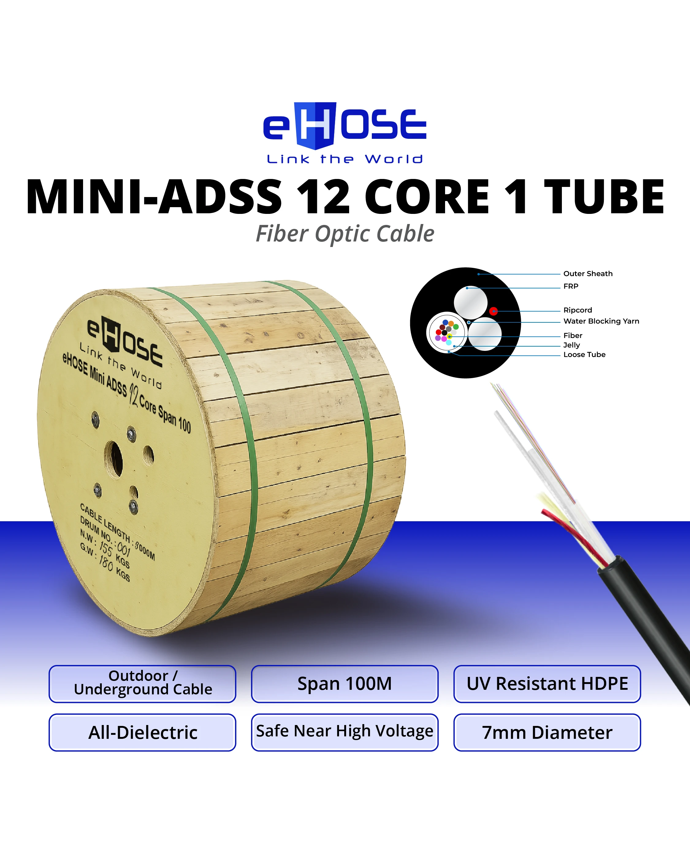 EHOSE MINI ADSS 12 CORE 1 TUBE 3KM