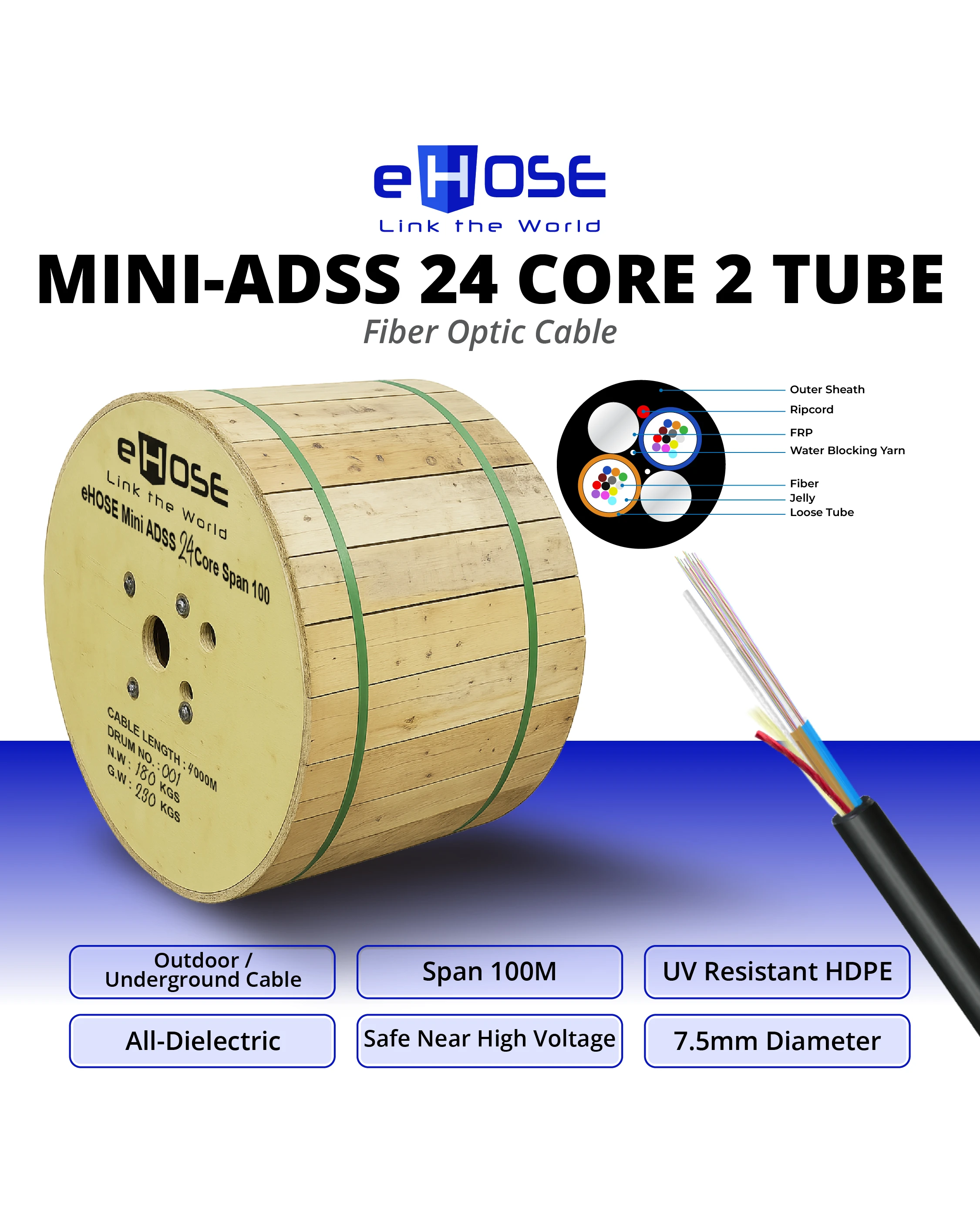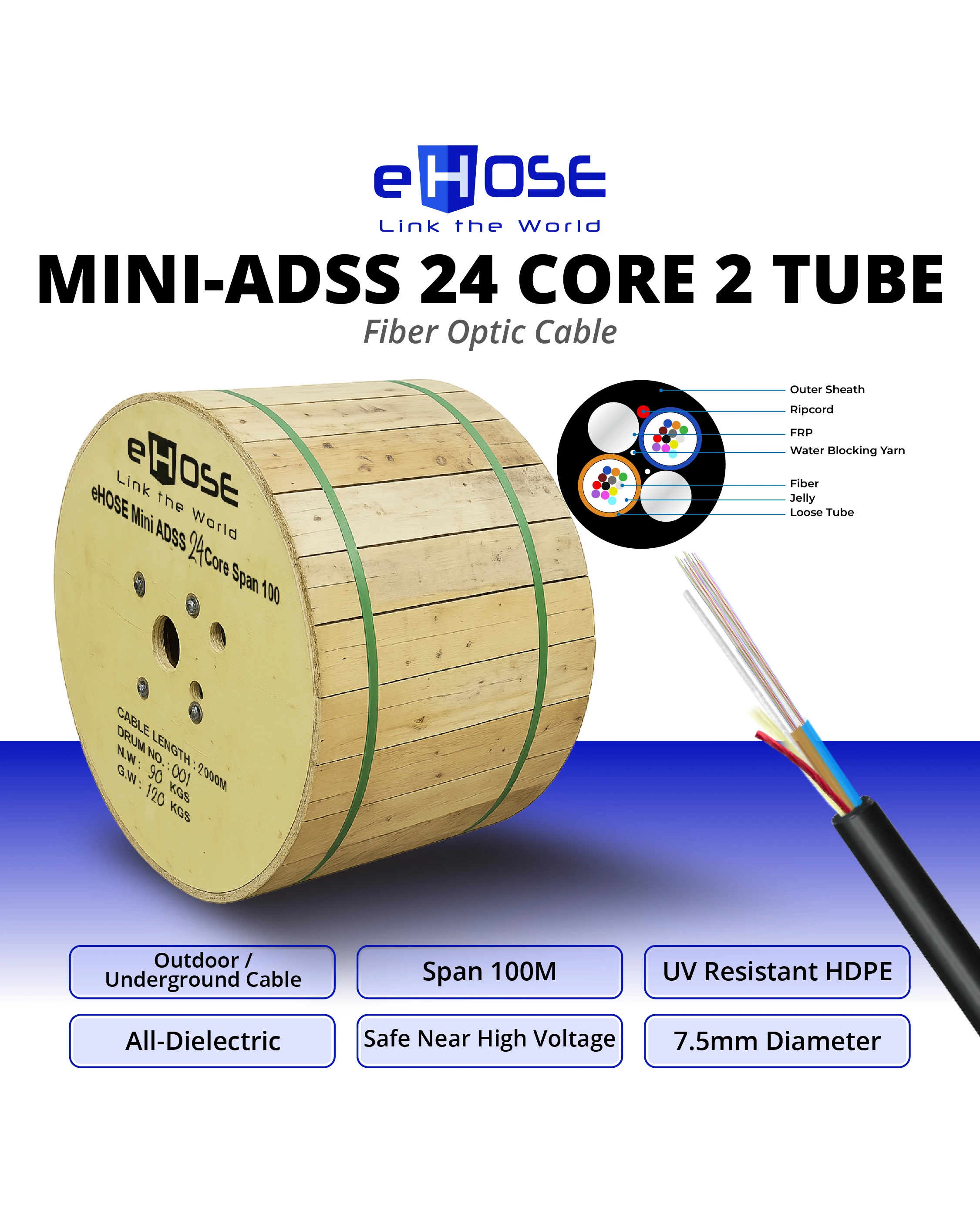 EHOSE MINI ADSS 24 CORE 2 TUBE 2KM