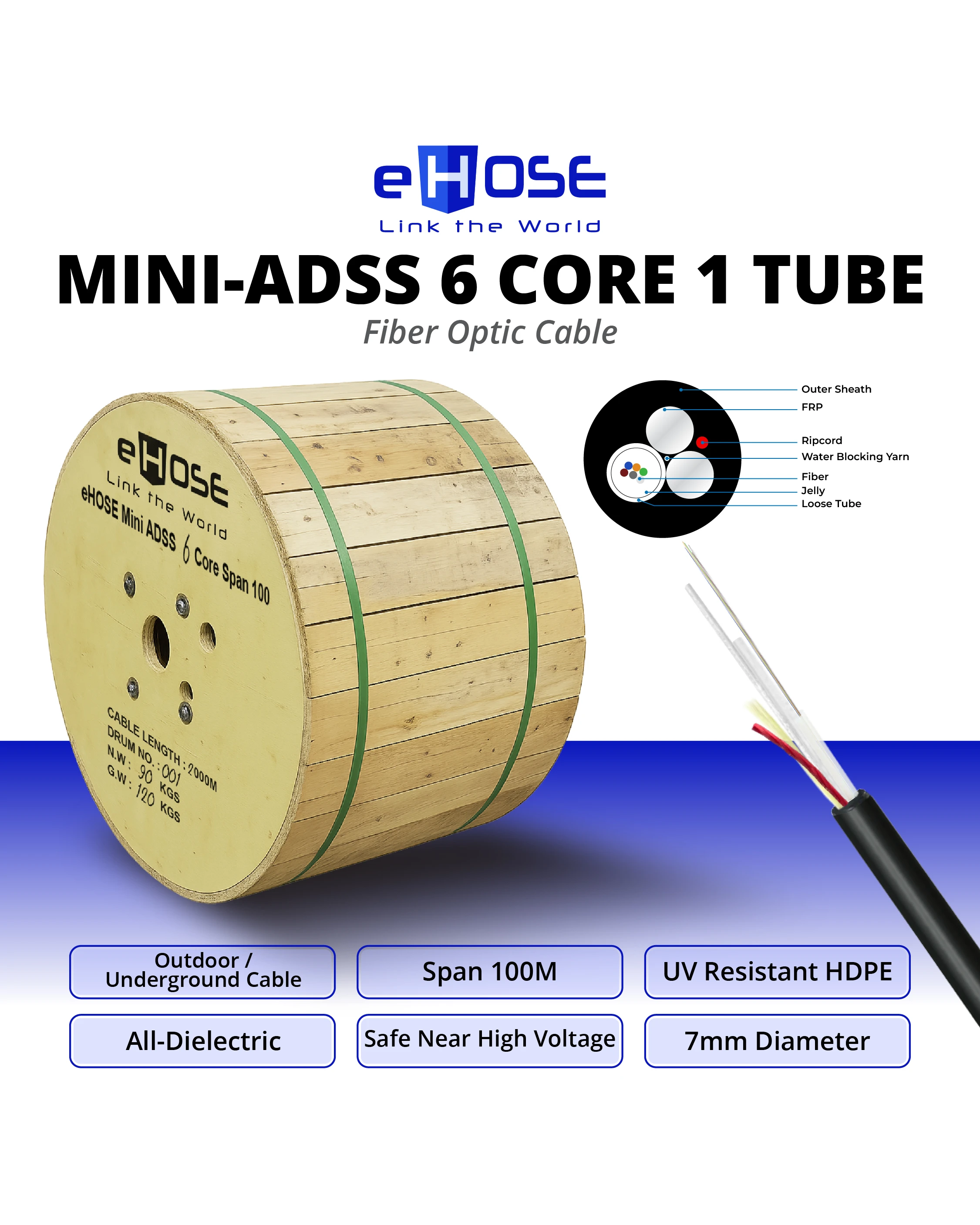 EHOSE MINI ADSS 6 CORE 1 TUBE 2KM